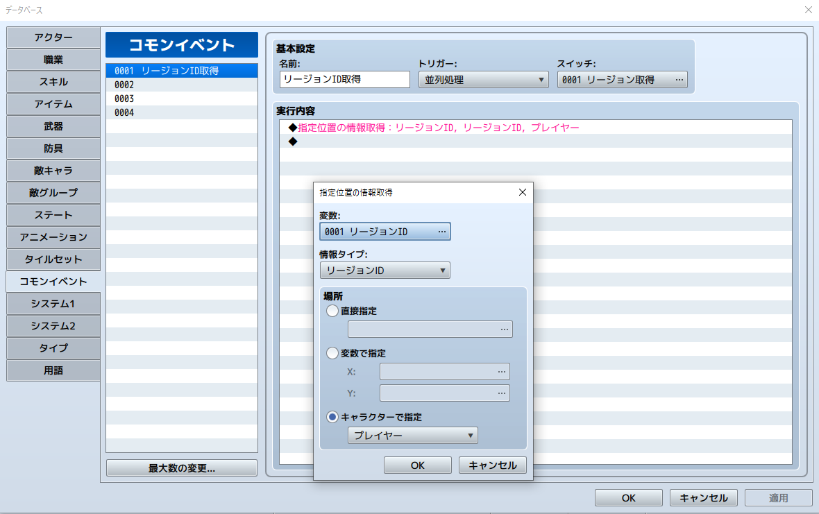 また、取得する際のイベントはコモンイベントで行わないと各マップ毎に設定する必要が出来る為コモンイベントで行うことをお勧めします。